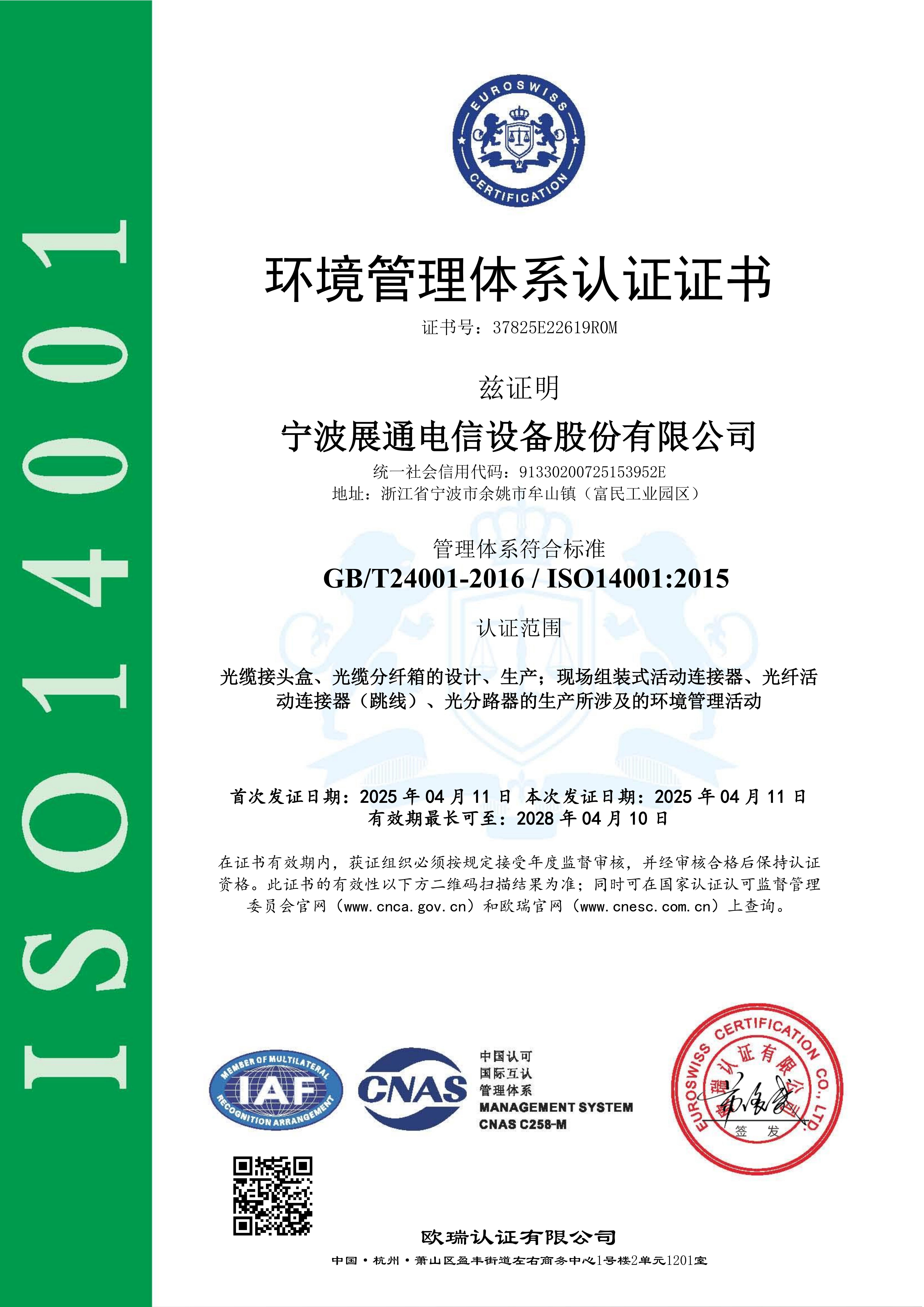 环境管理体系证书