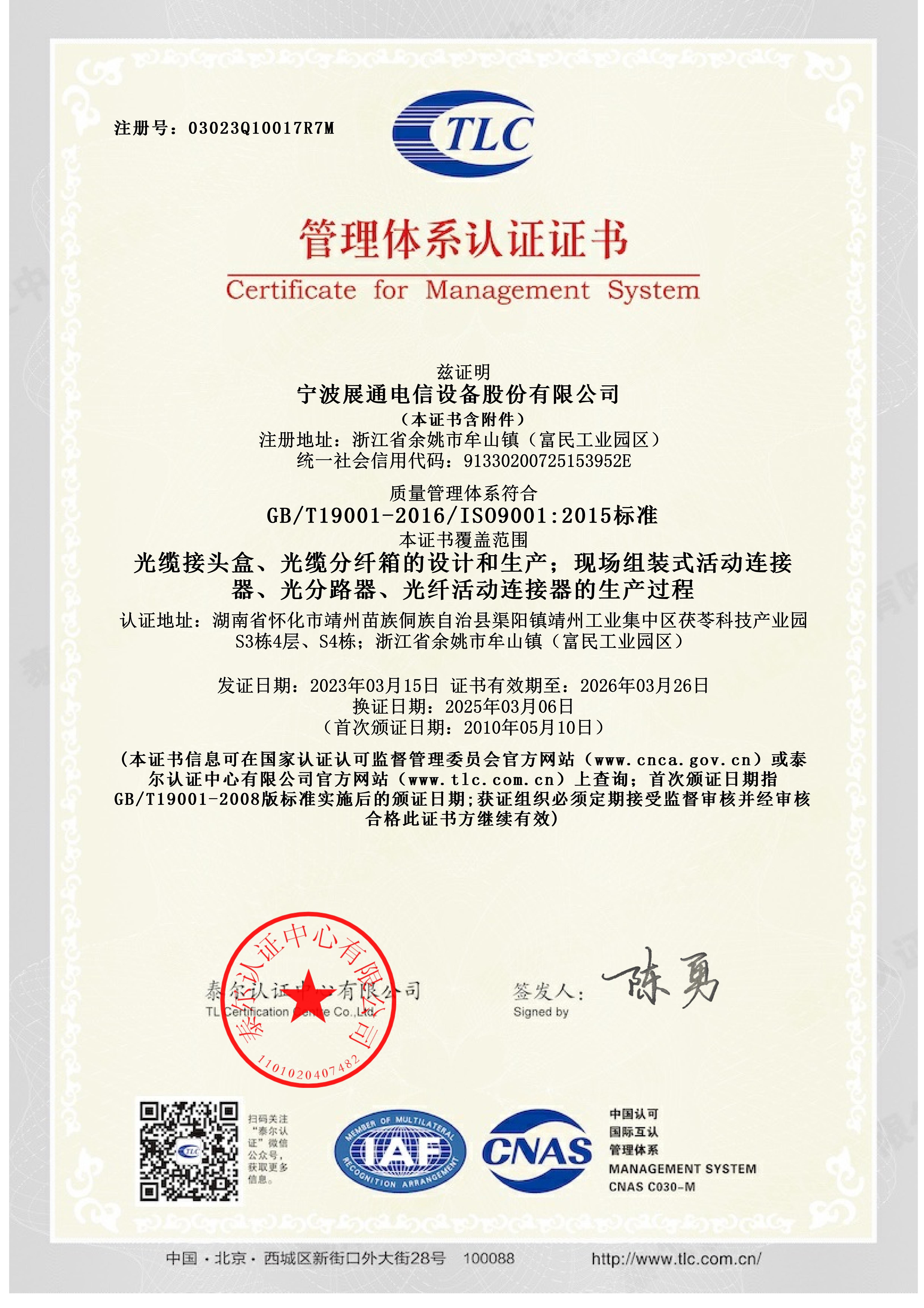 质量管理体系证书