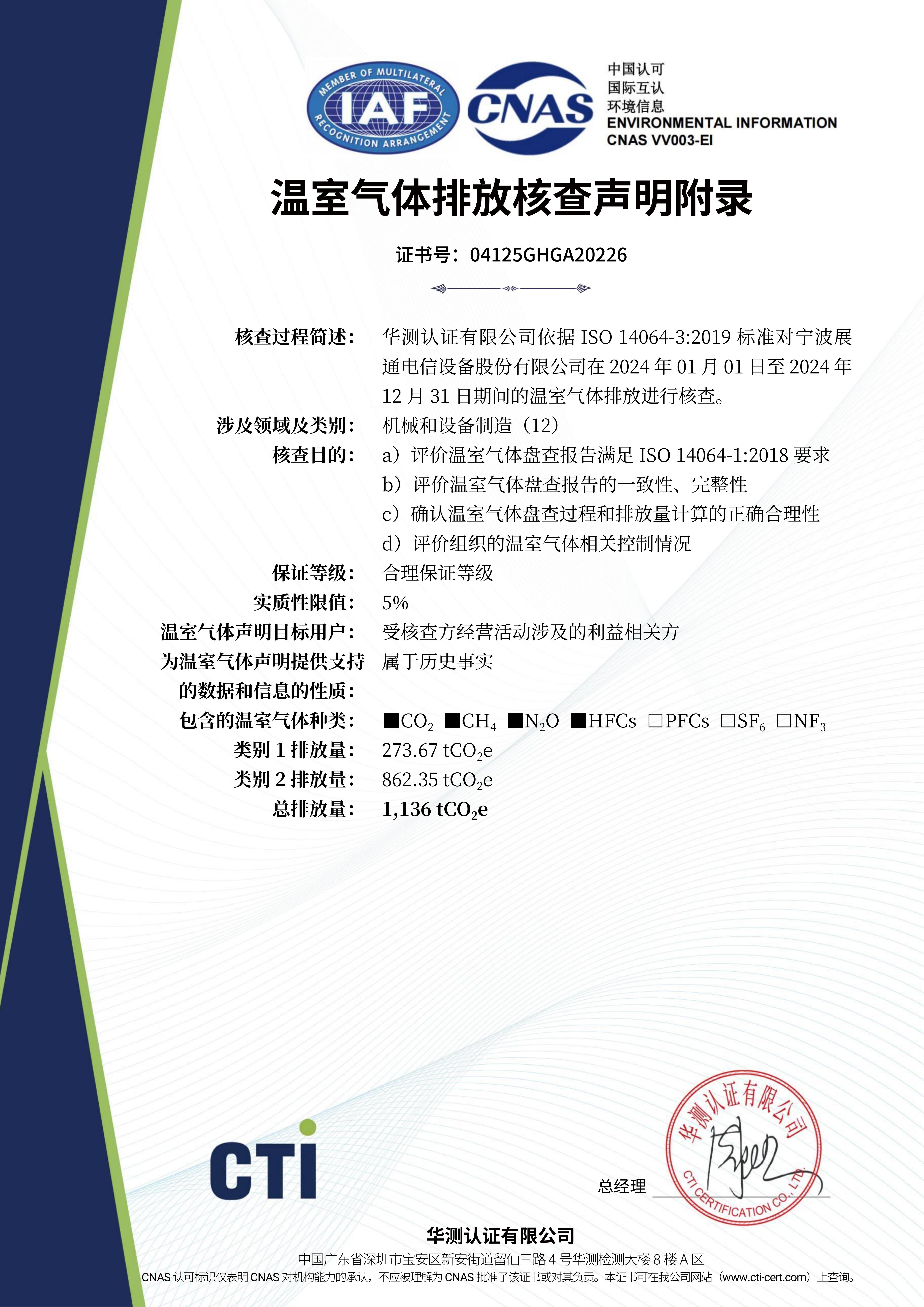 温室气体排放核查声明